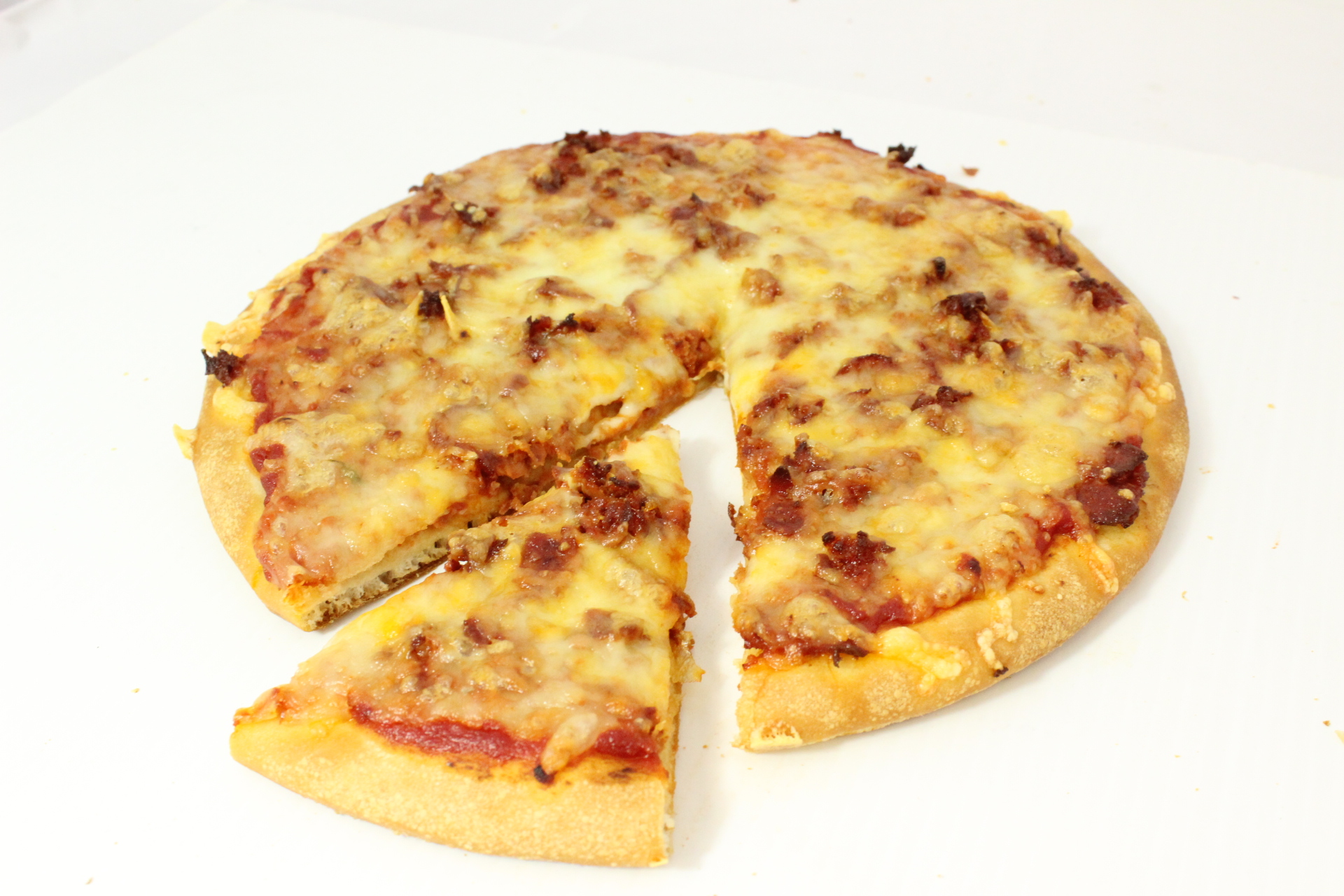 Description: Our light and crisp 10" original crust, dairy free mozza shreds, sun ripened tomato sauce, dry cured pepperoni