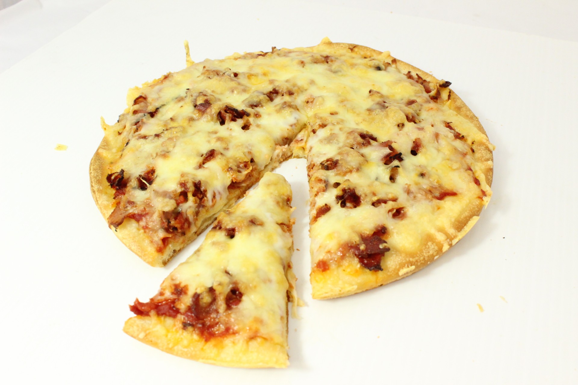 Our light and crisp 10″ original crust, 100% real mozzarella cheese, black forest ham, sun ripened tomato sauce, dry cured pepperoni