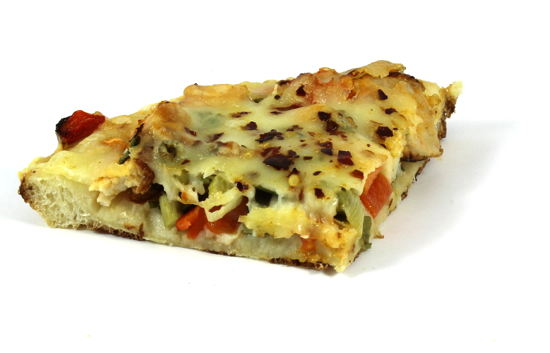 Our light and crisp original crust, spicy blend of hot sauce, parmesan and chicken breast strips, 100% real mozzarella cheese, red bell peppers, chives, dried chilies